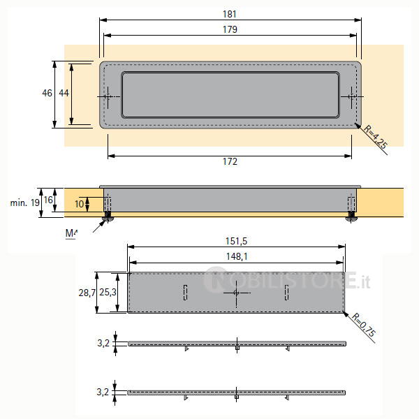 Il portafrontale permette di incollare l'inserto della stessa essenza del mobile.