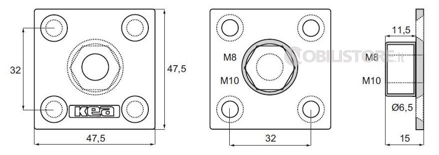 Piastra quadra per fissaggio gambe tavolo
