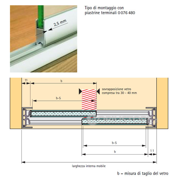 - Utilizzabile con vetro di spessore 5, 6 e 8 mm