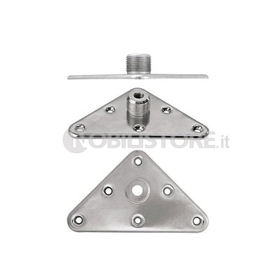 Piedino in ottone fornito con attacco standard a piastra triangolare AP01. In alternativa fornibile con attacco piastra quadra AP02 da ordinare separatamente.