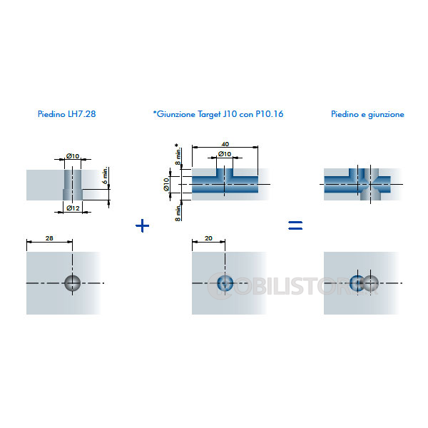 Piedino Target J10 LH7.28 utilizzabile con la giunzione Target J10