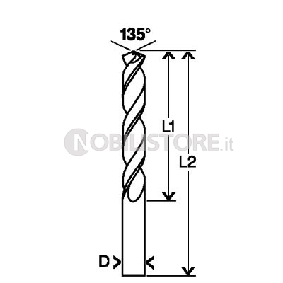 Punte per metallo destrorse tipo N, angolo di spoglia 135°, affilatura quadrupla secondo DIN 338, tolleranza del diametro h8.