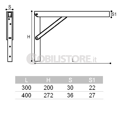 Reggimensola ribaltabile a tre posizioni portata 200 kg