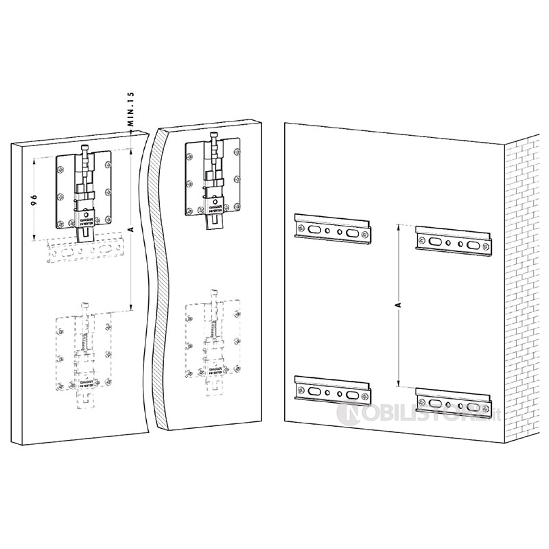 Applicazione: fissaggio sul retro del pannello nella parte superiore sostiene il peso e permette la regolazione utilizzando una chiave esagonale da 4 mm.