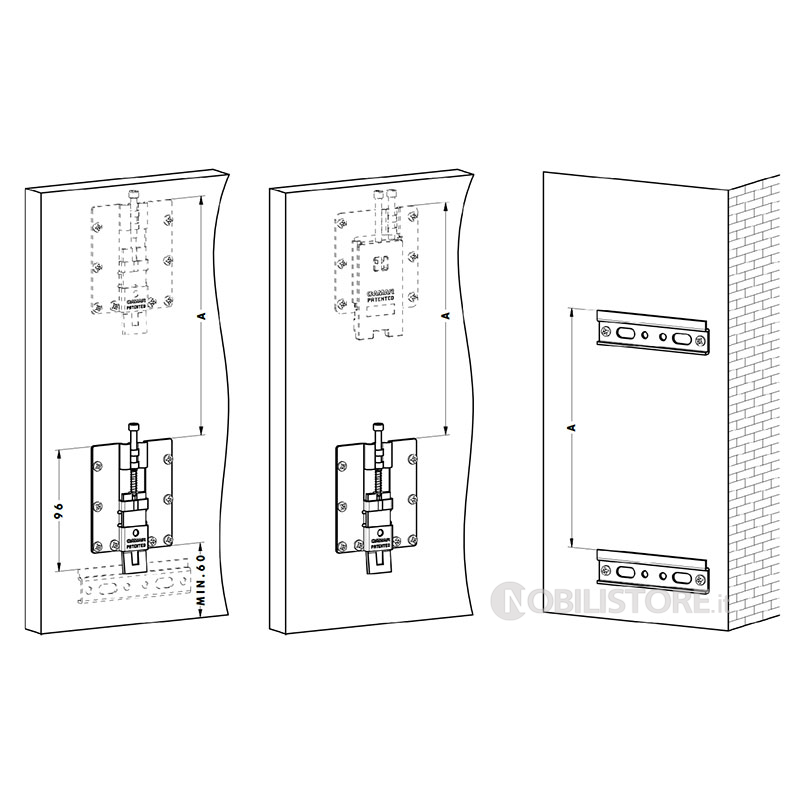 E'utilizzato in associazione con il Reggipensile 814 che viene fissato alla parte superiore del pannello.