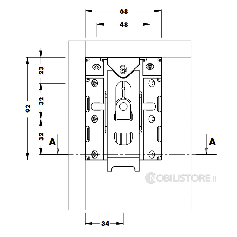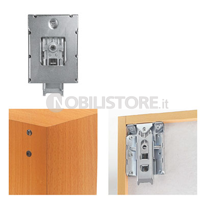 Applicazione: invisibile dietro lo schienale, arretramento schienale min 16 mm, regolazione anteriore tramite fori Ø min 10 mm praticati sullo schienale