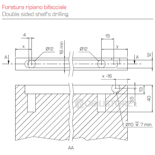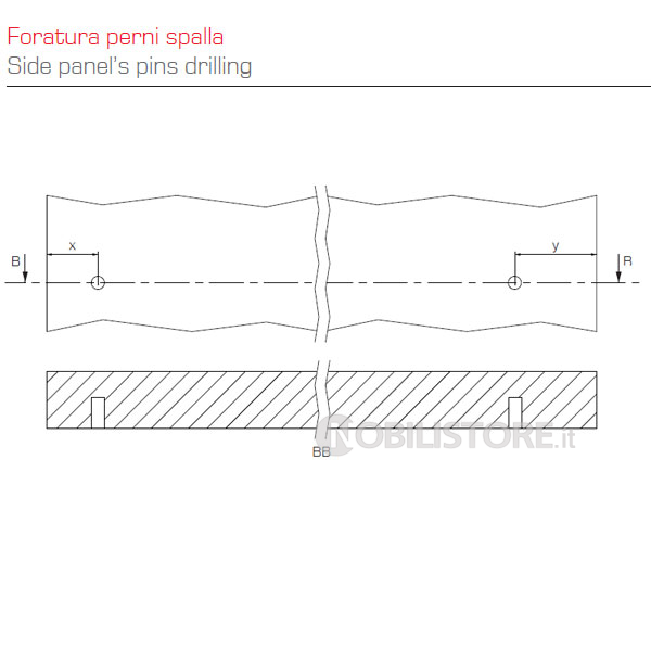 Il giunto reggipiano MonoGhost viene montato all’interno di una scanalatura praticata sul fianco del piano e si ancora alla testa di un perno inserito in un foro praticato sulla spalla.