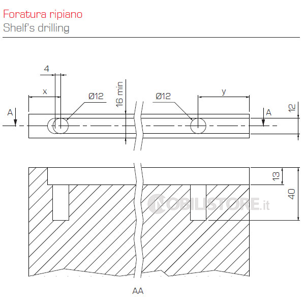 La combinazione dei due giunti permette la rimozione e l'eventuale riposizionamento del ripiano in modo semplice e rapido