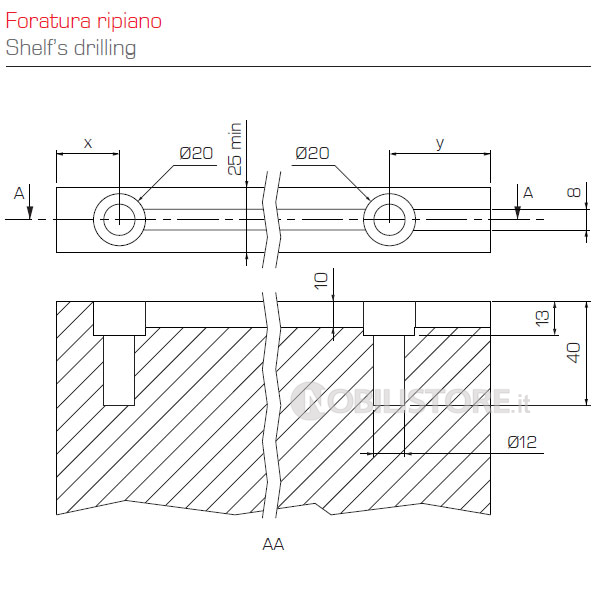 La combinazione dei due giunti permette la rimozione e l'eventuale riposizionamento del ripiano in modo semplice e rapido