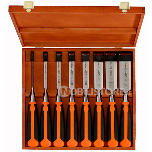 Scalpelli per legno Bahco 424P-S8-EUR, serie 8 pezzi in scatola legno