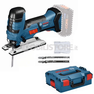 La struttura robusta e il potente motore brushless del GST 18V-125 S Professional (con impugnatura assiale) assicurano una maggiore durevolezza e un’eccellente autonomia. Il seghetto alternativo a batteria è una soluzione affidabile per qualsiasi applicazione, ad un rapporto qualità/prezzo ottimale nel suo segmento. Il GST 18V-125 S Professional è un utensile intuitivo e focalizzato sulle funzioni principali, come ad esempio alloggiamento lama SDS, il LED, l’oscillazione su 4 livelli, la funzione soffiatrucioli e la preselezione della velocità.