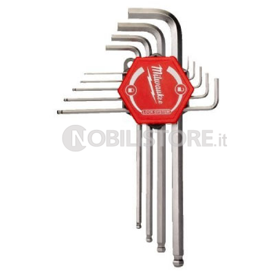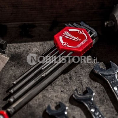 Serie chiavi a brugola lunghe piegante con punta sferica Milwaukee 9 pezzi