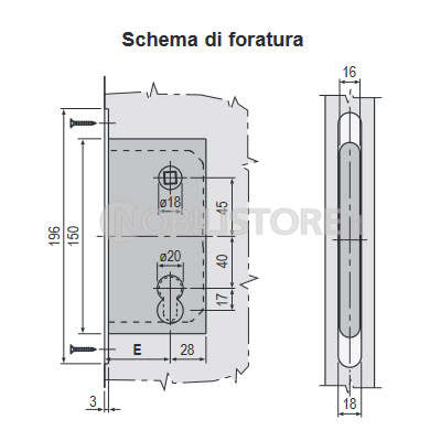 Predisporre sul pannello una cava ed una fresata con le dimensioni riportate nel disegno.
