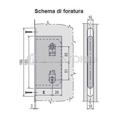 Predisporre sul pannello una cava ed una fresata con le dimensioni riportate nel disegno.