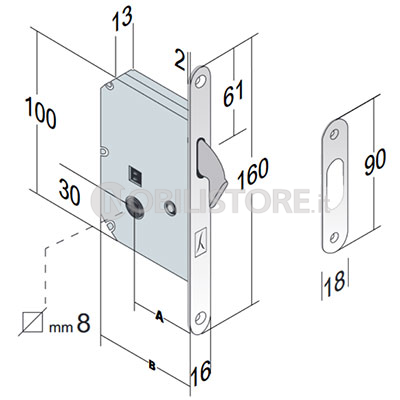 Serratura incasso per porta scorrevole