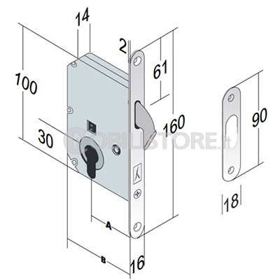 Serratura Bonaiti 062 a gancio per cilindro yale