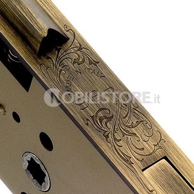 Serratura da incasso con catenaccio e scrocco per porte in legno Elitè 3200 incisione Stile Liberty