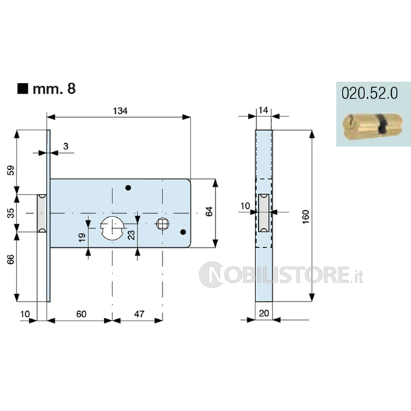 Cilindro in dotazione 020.52.0 lunghezza 52 mm 21-10-21