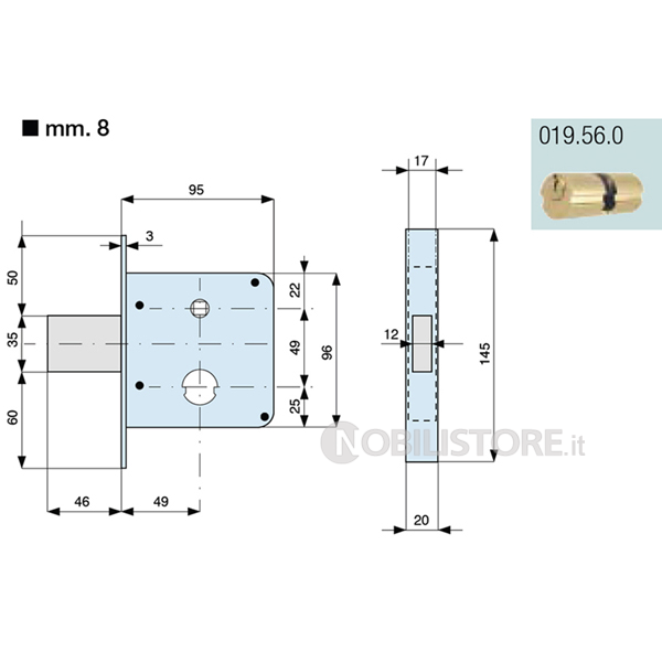 Cilindro in dotazione 019.56.0 lunghezza 56 mm 23-10-23