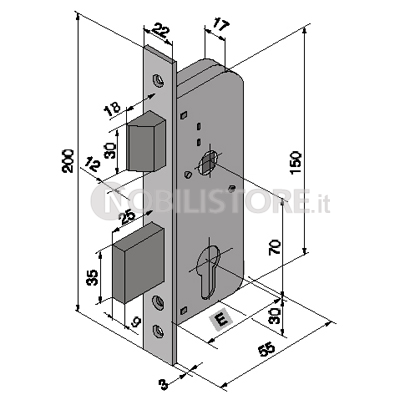 Frontale in acciaio zincato, lunghezza catenaccio 25 mm, cilindro non incluso da ordinare a parte
