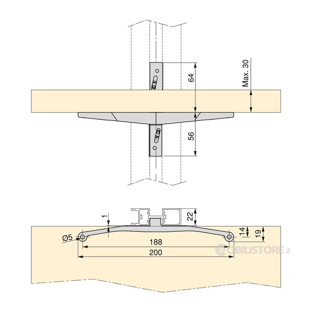 per il montaggio di una mensola in legno sul profilo montante Zero