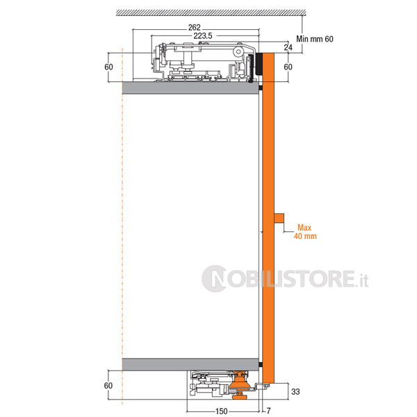 - Peso massimo per singola anta 50 Kg (uniformemente distribuito).