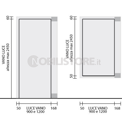 Dimensioni max vano a muro 900x2450 mm