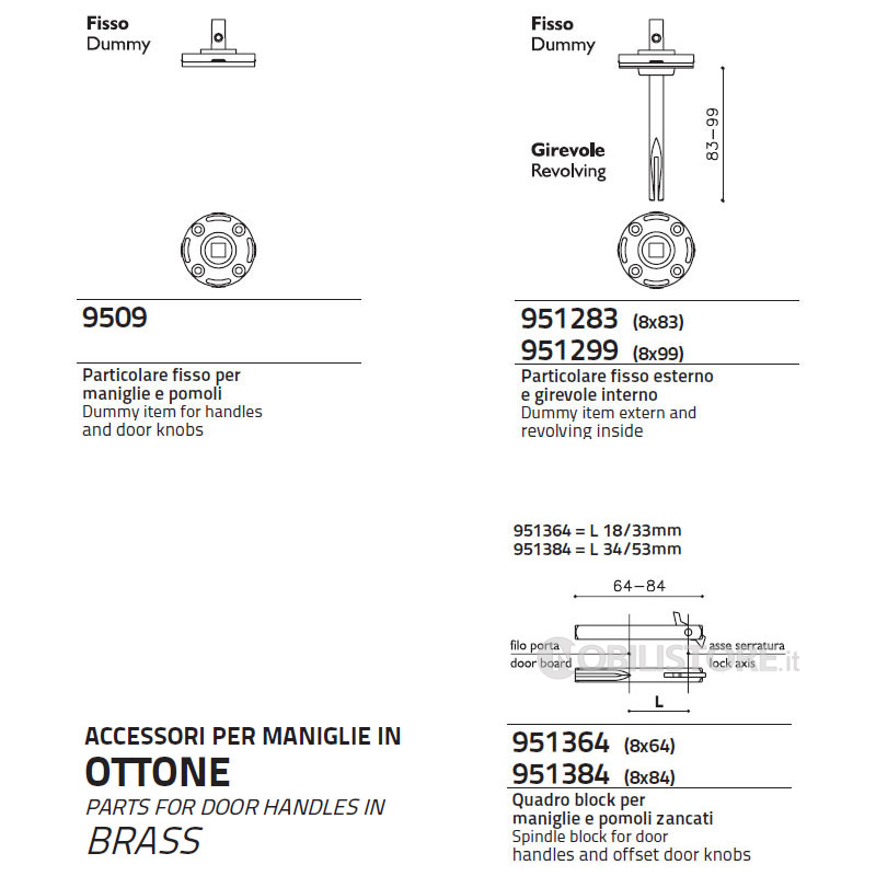 Accessori di montaggio per porte con spessori diversi dallo standard, quadri combinati, speciali ed adattatori foro maniglia