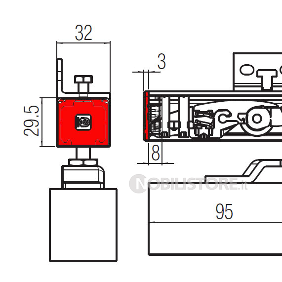 Sistema scorrevole 0600 con carrelli in zama e staffa a filo incassata nel pannello con regolazione verticale facilitata.