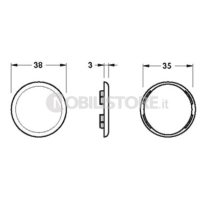 Diametro 38 mm, per foro diametro 35 mm, spessore 3 mm