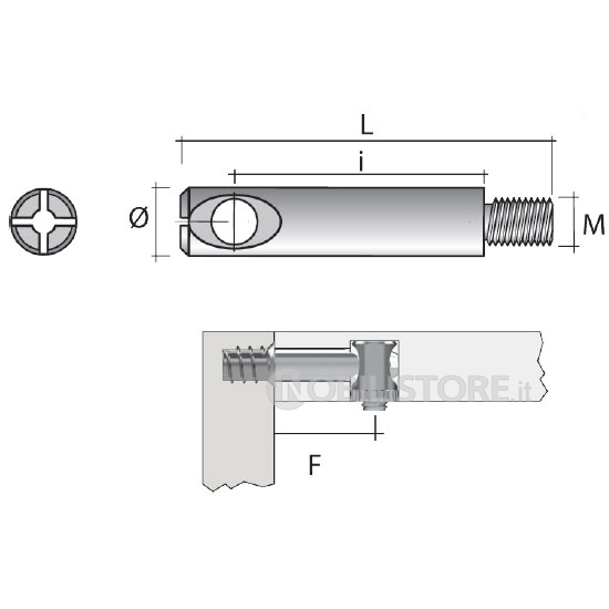 | Ø mm | L mm | M filetto | I mm | F mm |
