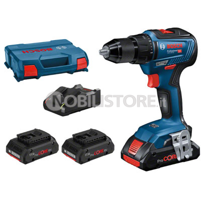 Questo trapano-avvitatore è indicato per forare nel legno fino a 35 mm di profondità, nell’acciaio fino a 13 mm e per diametri viti fino a 10 mm. L’utensile è compatibile con tutte le batterie Bosch Professional da 18 Volt, inclusi batterie e caricabatterie ProCORE18V (Professional 18V System).