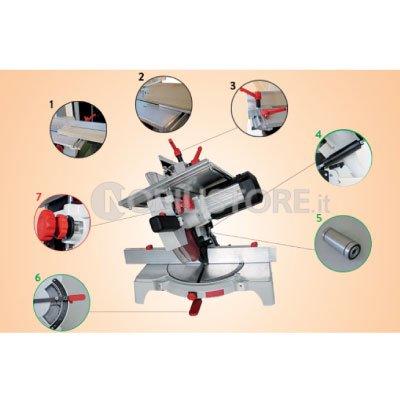 Taglio max.con testa a 45° e tavola a 90° : mm.50 (h) x 150 (l)